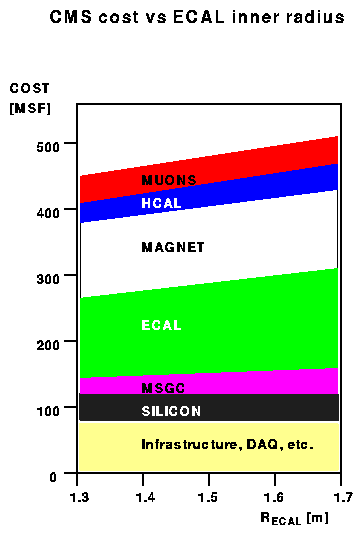 CMS cost vs inner ECAL radius