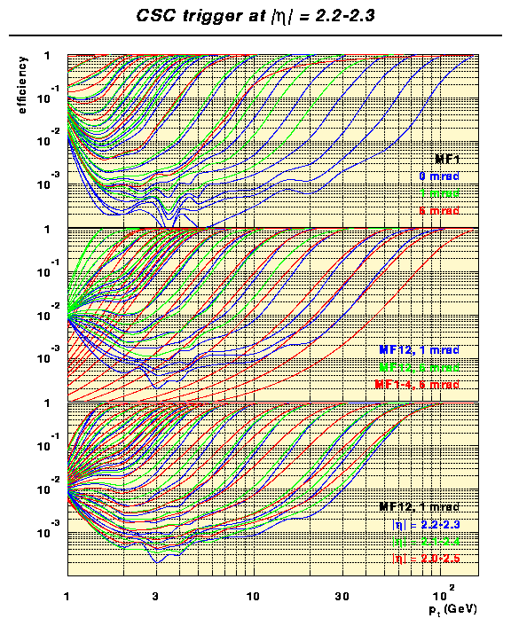 efficiency of various CSC trigger options (eta=2.25)